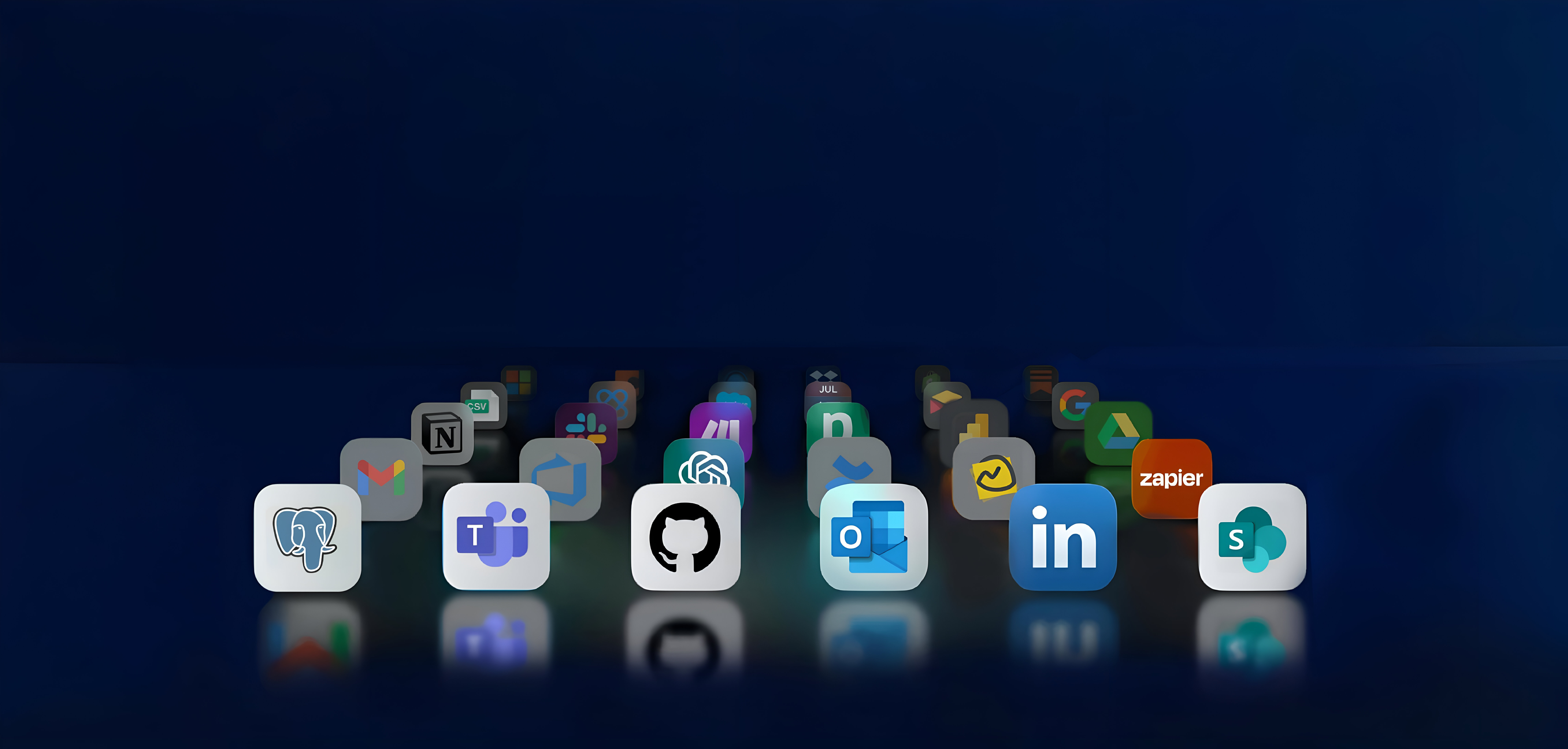 Connect all your business applications, including Outlook, Teams, Gmail, SharePoint, and more. Bring all your company's knowledge together in one place.